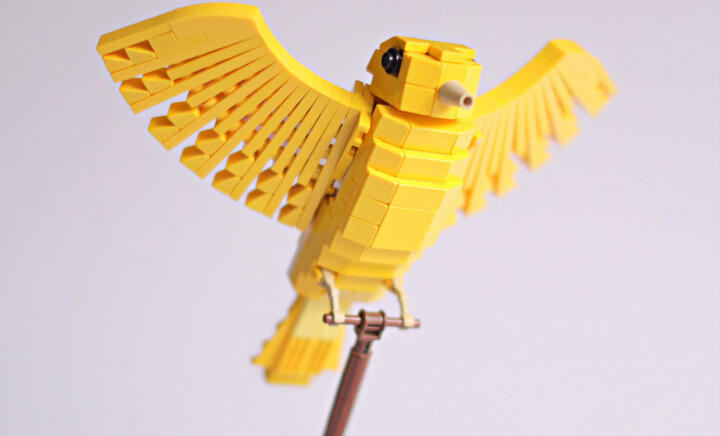 Tom Poulsom , tukang kebun dari Bristol , ternyata semangat untuk membuat karya yang menakjubkan yang terbuat dari LEGO yaitu replika burung bata .