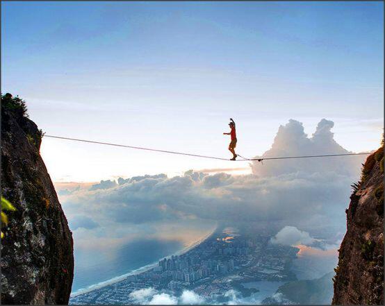 Kalau ini mah bahaya banget, perlu keseimbangan yang luar biasa agar bisa melewati tali itu. Deg-degan deh.